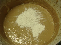 Junte o cacau, o leite, a farinha e bata para misturar.