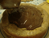 Desenforme o bolo num prato ou travessa. Corte ao meio, separe as duas partes. Espalhe o recheio com a ajuda do pão duro, cubra com a outra parte, por cima espalhe generosamente a cobertura. Leve a geladeira.