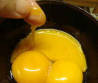 Em outra tigela, bata as gemas, o adoçante e a margarina.