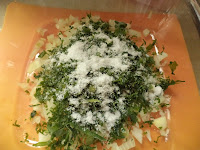 Juntar o sal, a pimenta do reino, as gemas, o creme de leite, o queijo ralado, a cebolinha e o alho poró sempre mexendo. Reservar.