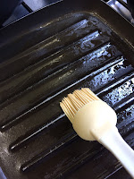 Numa grelha colque um pouco de óleo e espalhe bem.