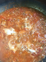 Quando o molho estiver bem apurado (mais grosso) junte as folhas de manjericão e desligue o fogo.