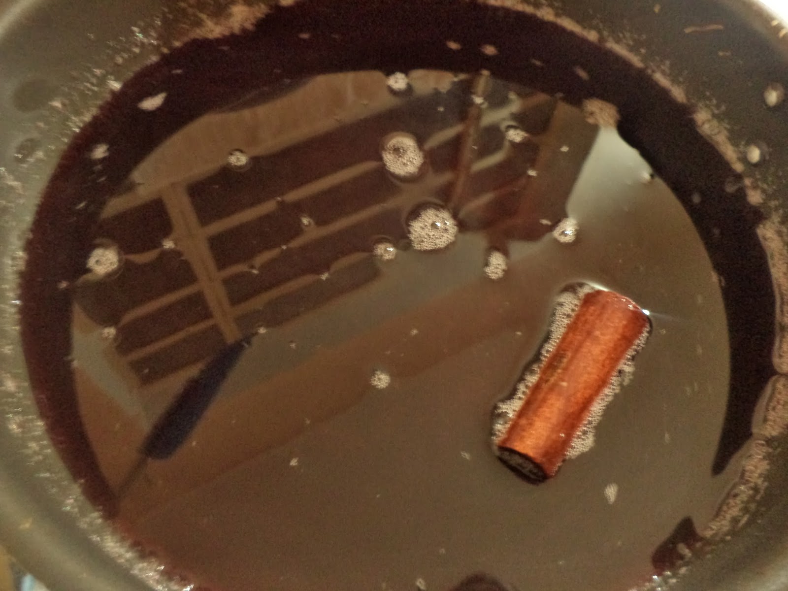 Numa panela coloque o adoçante, o vinho, a água e a canela. Leve ao fogo e deixe ferver até formar uma calda rala.